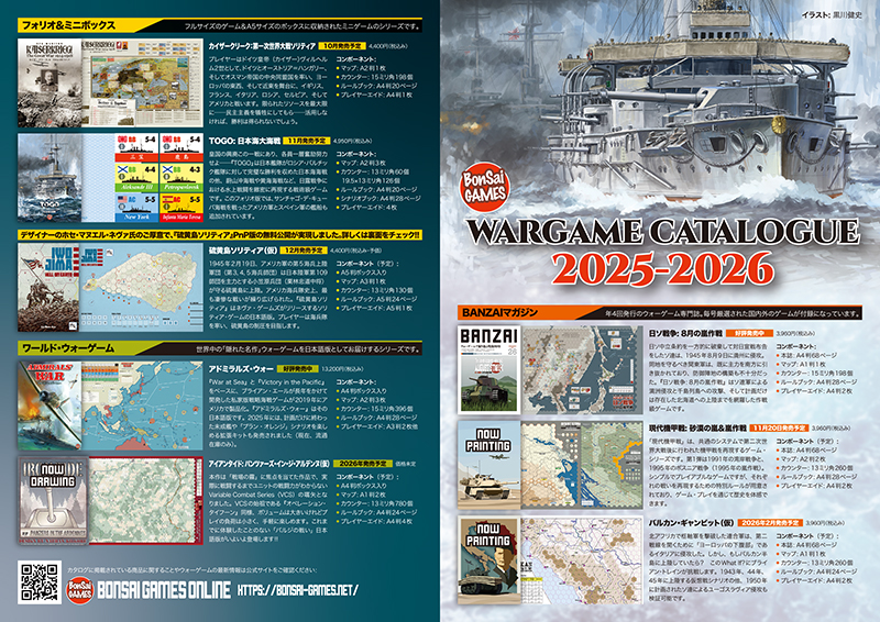 久しぶりにボンサイ・ゲームズのカタログを印刷しました。「2025-2026」と記しているように、年内と来年に発売予定の商品(の一部)を紹介しています。