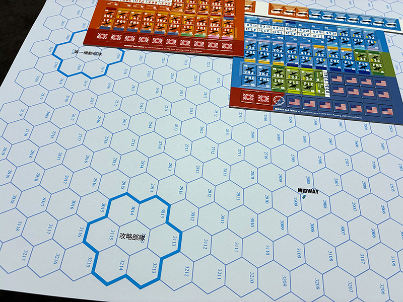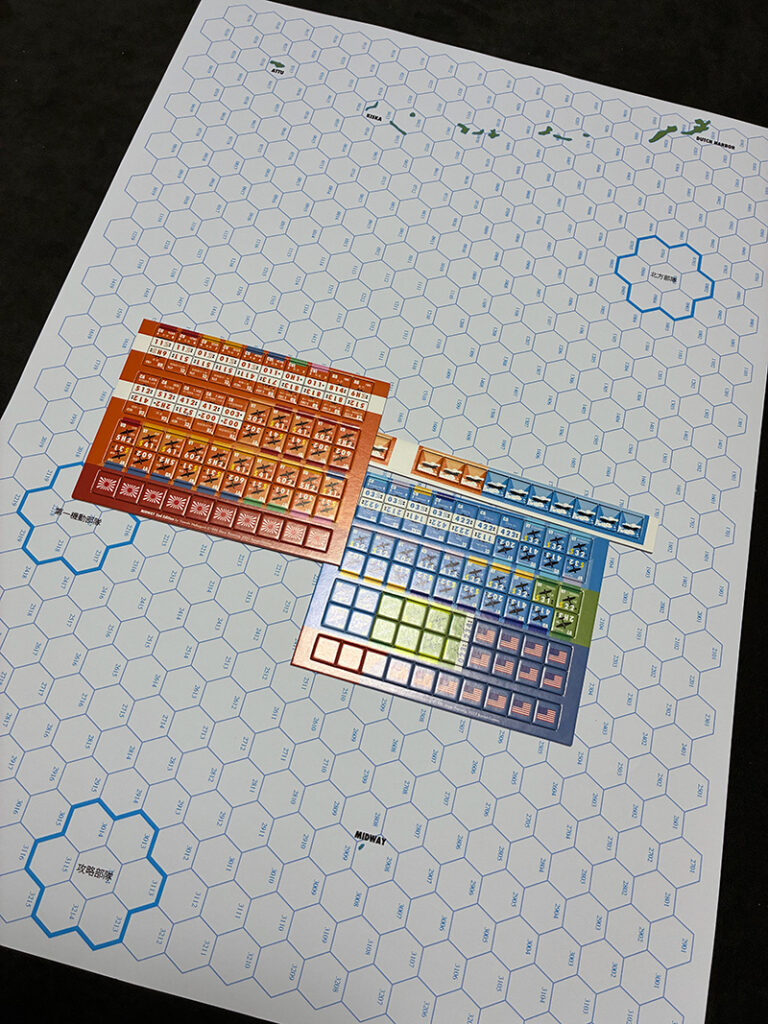 東京からハワイまでマップに収めたミッドウェイ海戦ゲームはありましたが(リンク先はBoardGameGeek。詳細不明ですがこれもか)、こういう切り取り方のマップは珍しいかもしれません。が、南雲機動部隊壊滅後の5日に山本五十六は第2機動部隊に南下を命じたりもしており(そして遠く分散させたことを宇垣参謀長が後悔しており)、アリューシャン方面を含めての「タイムループ」のほうが、歴史の呪縛を解く鍵が、より興味深いものになるかと思います。