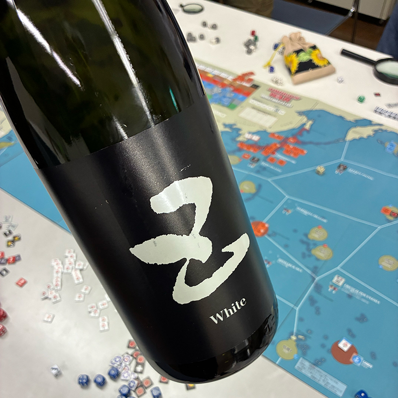 BANZAIマガジン第28号を読まれた方はおわかりですね、ペロ軍曹が「獺祭」とともに紹介された「もういっぽん!」です。毎回紹介されたお酒は購入しているのですが、うっかり一升瓶で買ってしまったので、ゲーム会で皆で飲もうと思ってとっておいたのです。いやあ、シェアして正解でした。美味すぎて、これならひとりでちびちび飲んでいてもすぐに一升瓶を飲み干してしまったかも。