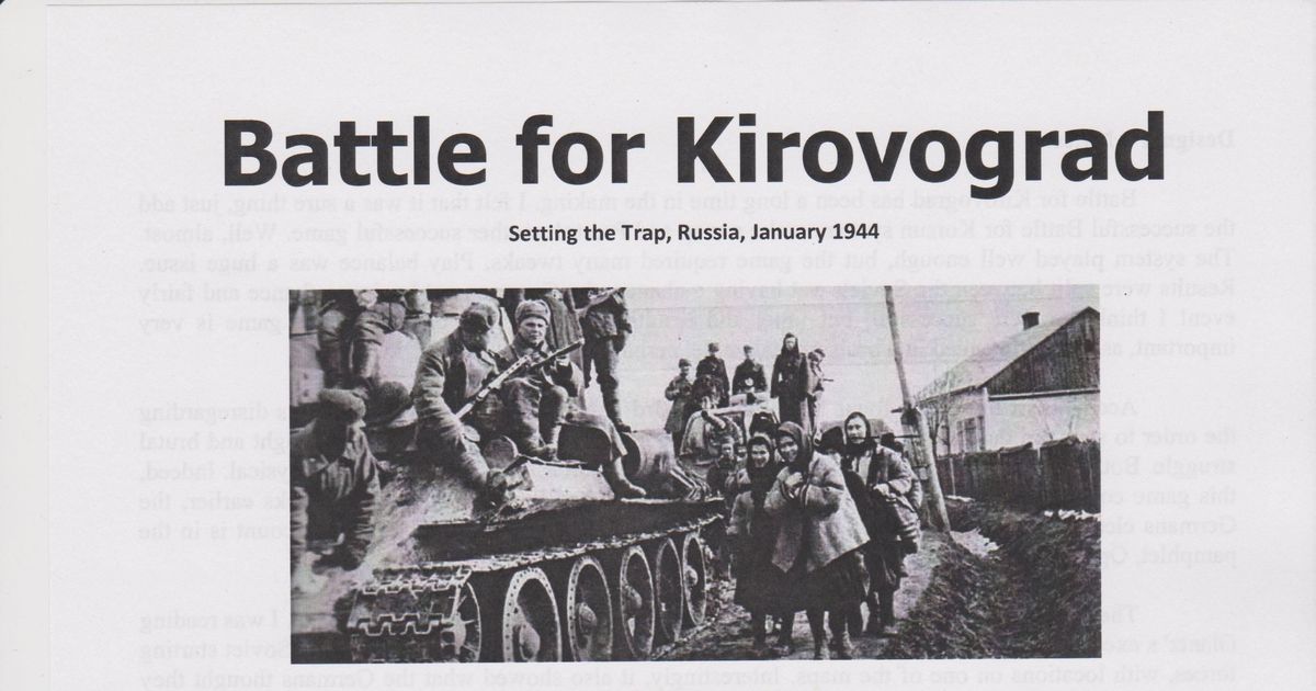 Battle for KirovogradBattle for Kirovograd is a simulation of the battles in January 1944 between the German 8th Army and the Soviet 2nd Ukrainian Front. The battle took place in fr…